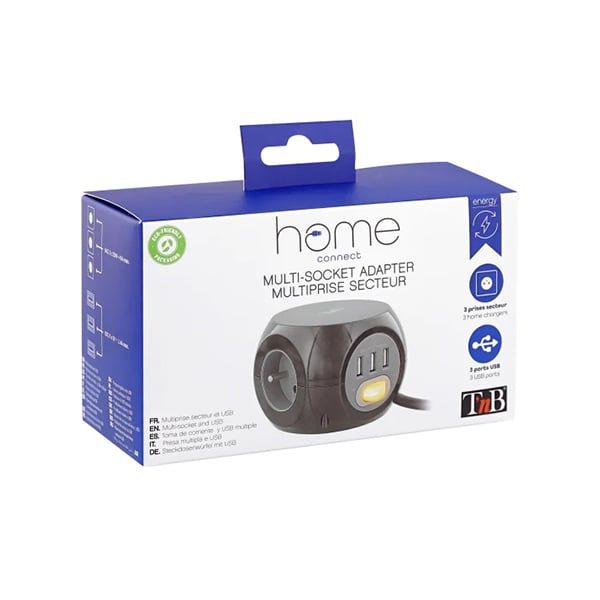 TNB USB хъб PSBALLBK, мултифункционален, 2 в 1, 3 порта, черен