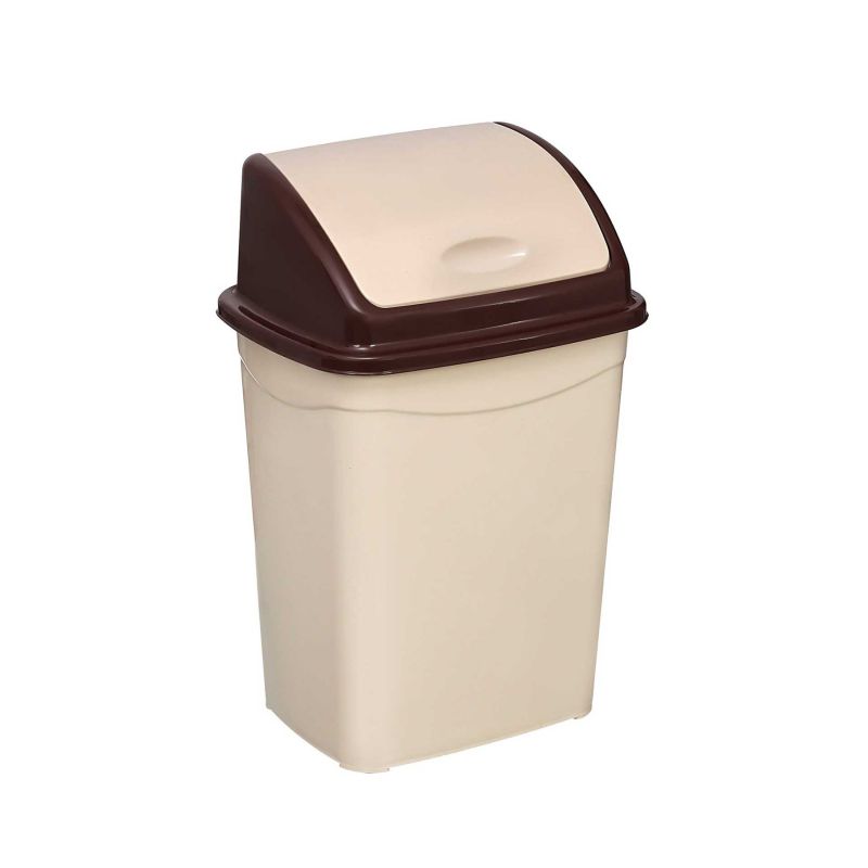 Кош за отпадъци Planet, с люлеещ капак, пластмасов, 26 L, бежово-кафяв
