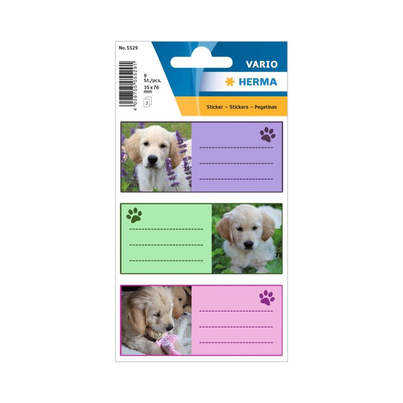 Herma Самозалепващи се етикети Кученца, ученически, 9 броя