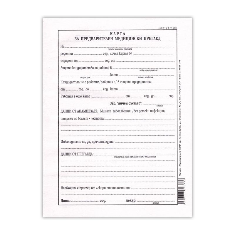 Медицинско за работа, 100 листа