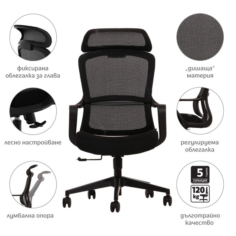 Директорски стол RFG Best HB, дамаска и меш, Tilt механизъм, до 120 kg, тъмносиня седалка, тъмносиня облегалка