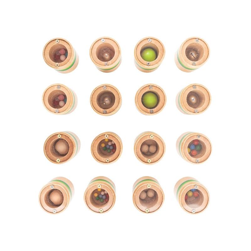 • Като разклащат и слушат внимателно, играчите могат да определят кои 2 контейнера са еднакви. Теглото на контейнерите също може да помогне.