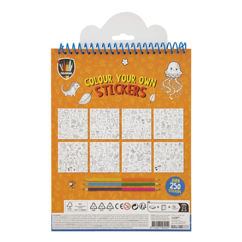С трите двустранни молива, включени в комплекта, детето може да оцвети стикерите по собствен вкус.