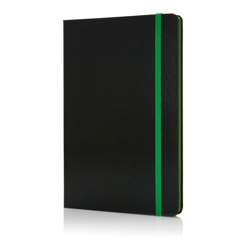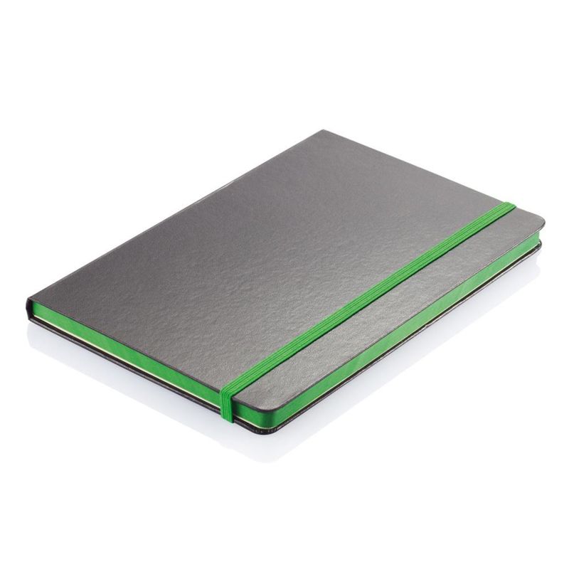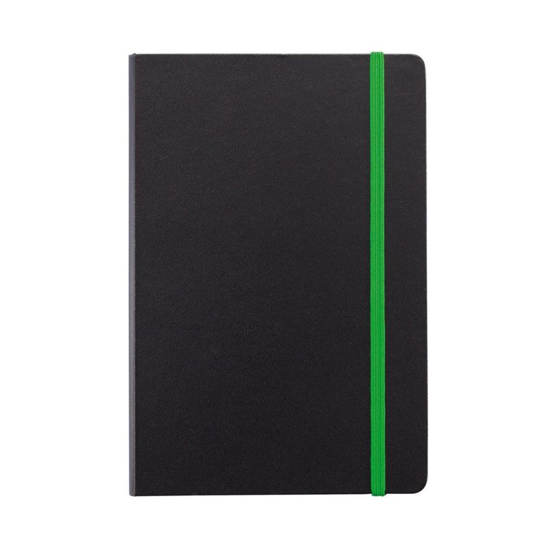 XD Тефтер Deluxe, А5, 80 листа, офсетова хартия, със зелен ластик, черен