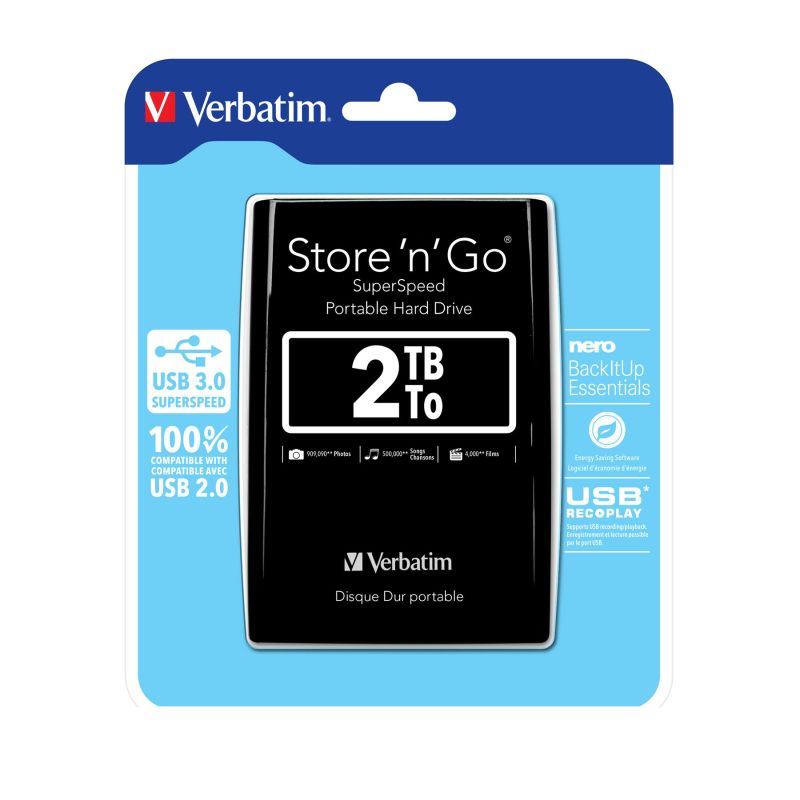 Verbatim Външен HDD твърд диск, 2.5'', USB 3.0, 2 TB, черен