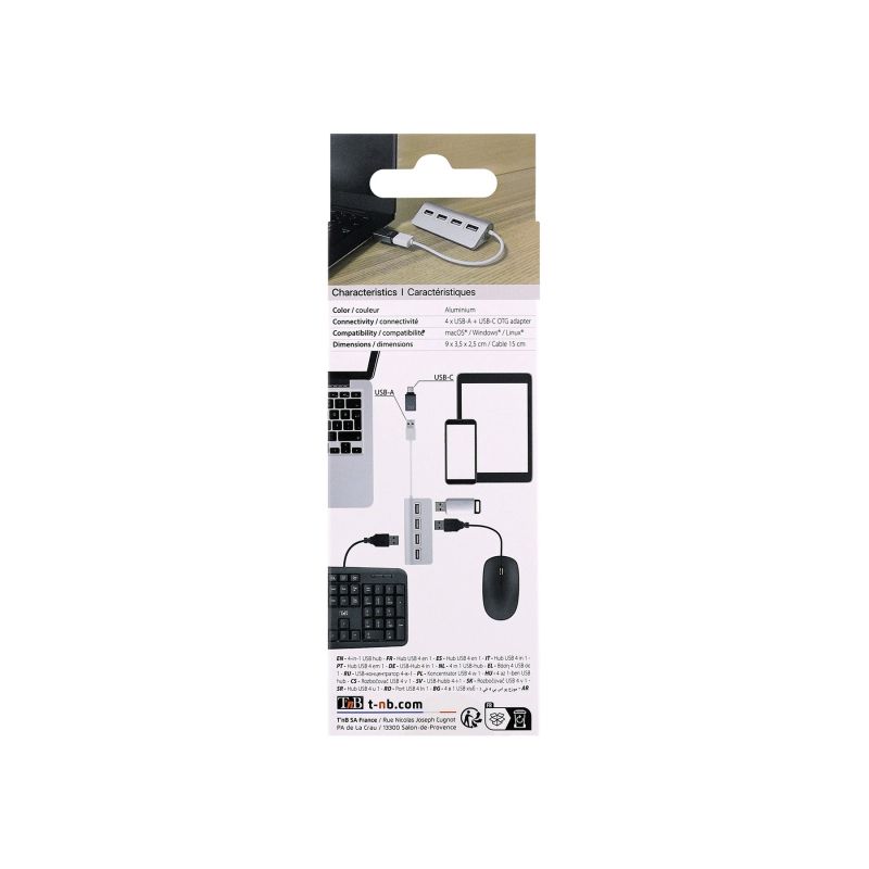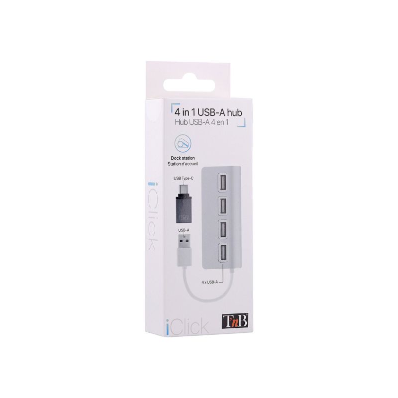 TNB USB Хъб, 4 порта, USB Type-A, с адаптер USB Type-C, бял