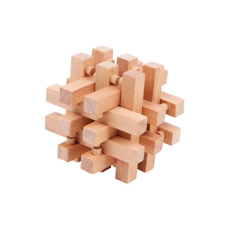 Различните форми, изработени от естествено дърво, трябва да бъдат сглобени в оригиналния си вид. Тук са необходими концентрация и сръчност! Кой може да се справи с това предизвикателство най-бързо?Размери: 6.5 x 6.5 x 6.5 cm.