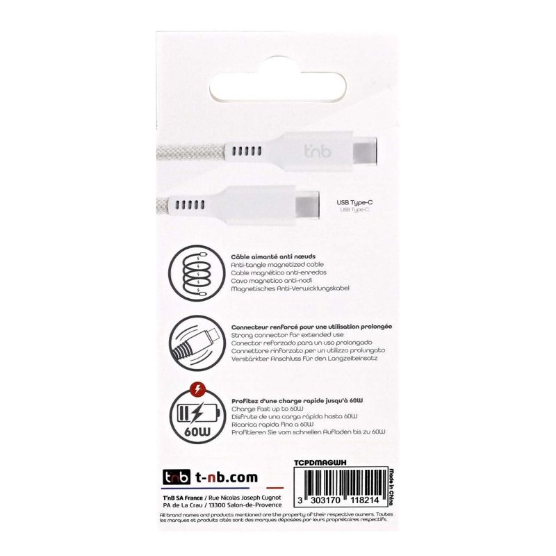 Кабел TNB, USB Type-C към USB Type-C, 1.5 m, бял