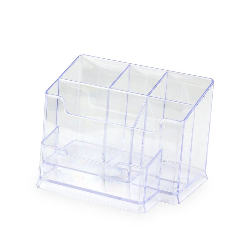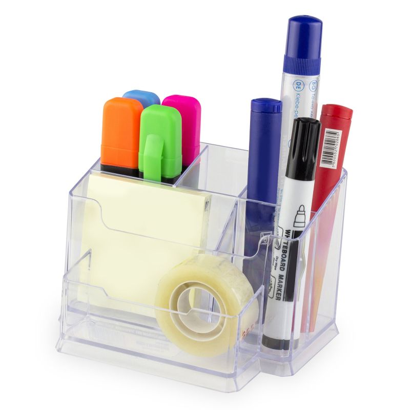 Органайзерът за бюро е с отделение за листчета, поствка за тиксо, отделение за визитки, химикалки, моливи, гумички и други.
