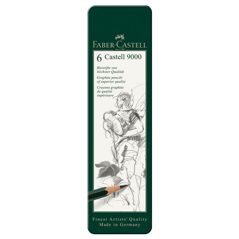 Faber-Castell Молив Castell 9000, чернографитен, 6 броя в метална кутия
