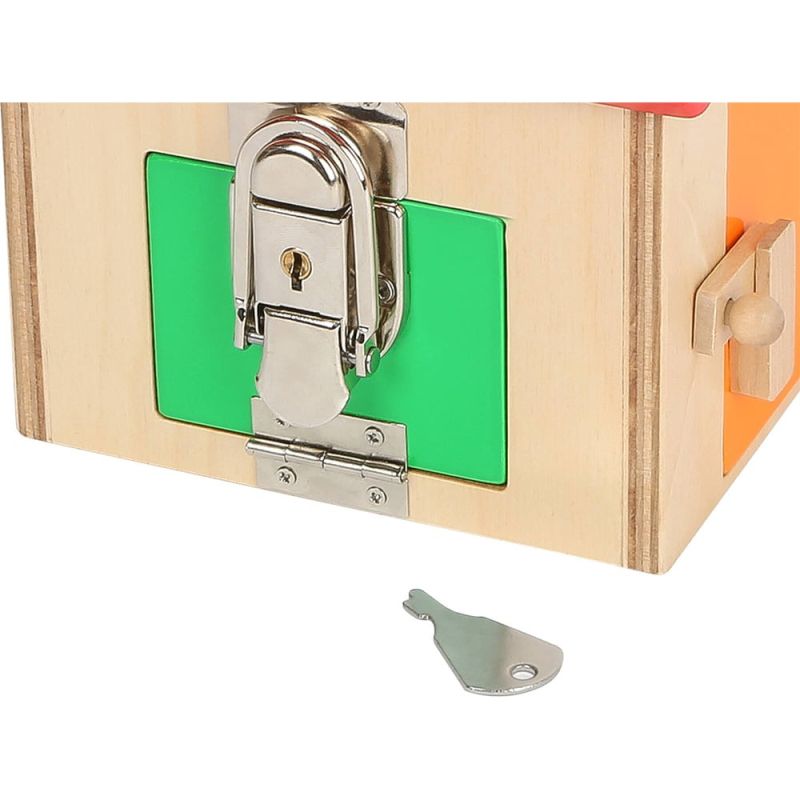 Играй и се учи! Със своите различни ключалки и брава, тази заключена къща насърчава развитието на детската концентрация и фините двигателни умения. Много ежедневни ситуации могат да се практикуват по интересен начин и да се изпробват благодарение на къщата. Компактните размери и висококачествена изработка я правят удобна за пренос и съхранение.
