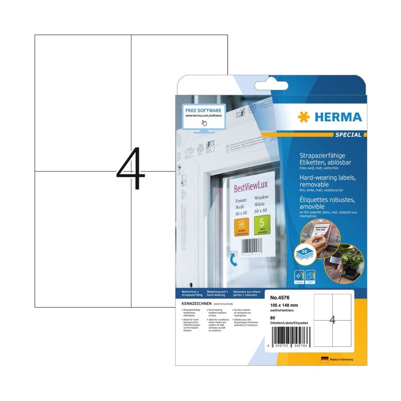 Herma Самозалепващи се етикети, A4, бели, водоустойчиви, 105 х 148 mm, 4 броя, 20 листа