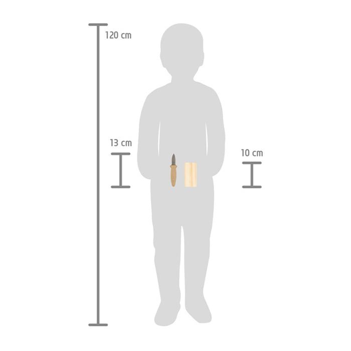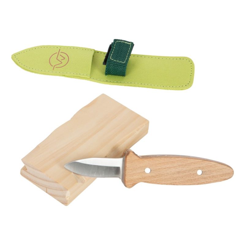 Благодарение на късото, здраво острие с тъп връх, компактния размер и дървената дъска, перфектно оформена за детски ръце, децата могат да направят първите си стъпки в дърворезбата!