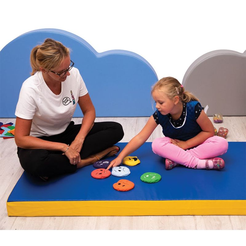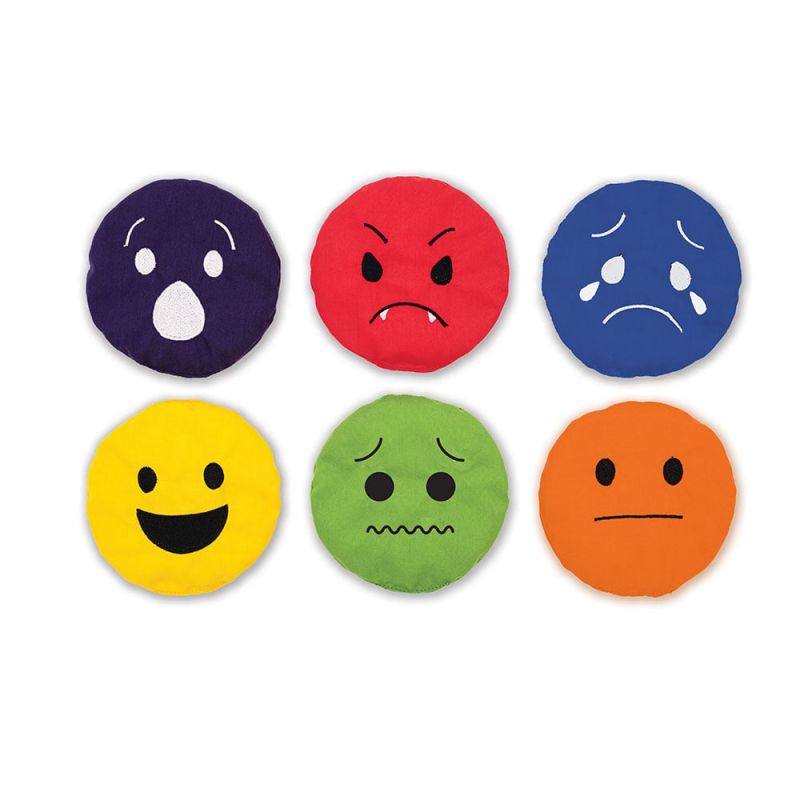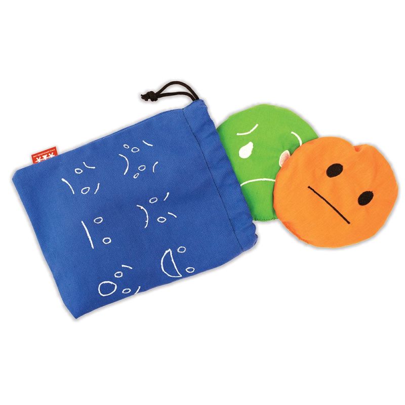 Сензорни торбички, бродирани с лица, илюстриращи основните емоции. Изработени от устойчива, приятна на допир материя в ярки цветове.
