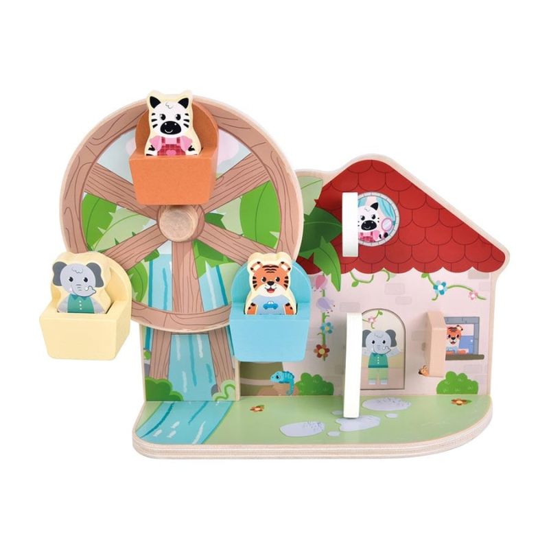 Завърти манивелата и изпрати трима животински приятели на разходка, докато откриваш съвпадащи мотиви зад отварящите се капачета. Активна игра, която развива координацията и насърчава въображението.
