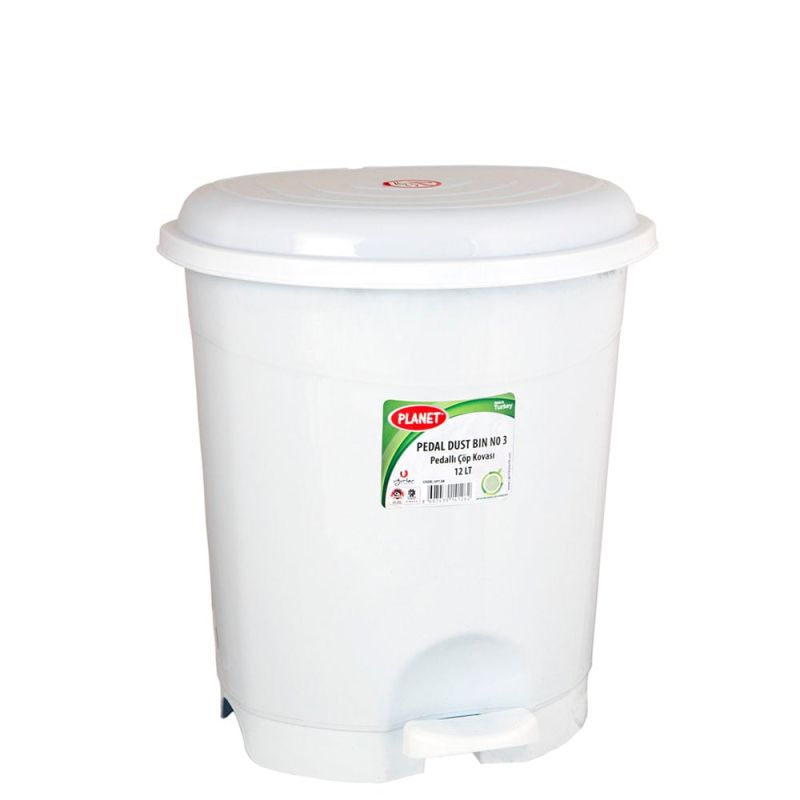 Кош за отпадъци Planet, с педал, пластмасов, 12 L, бял, 290 x 270 x 325 cm
