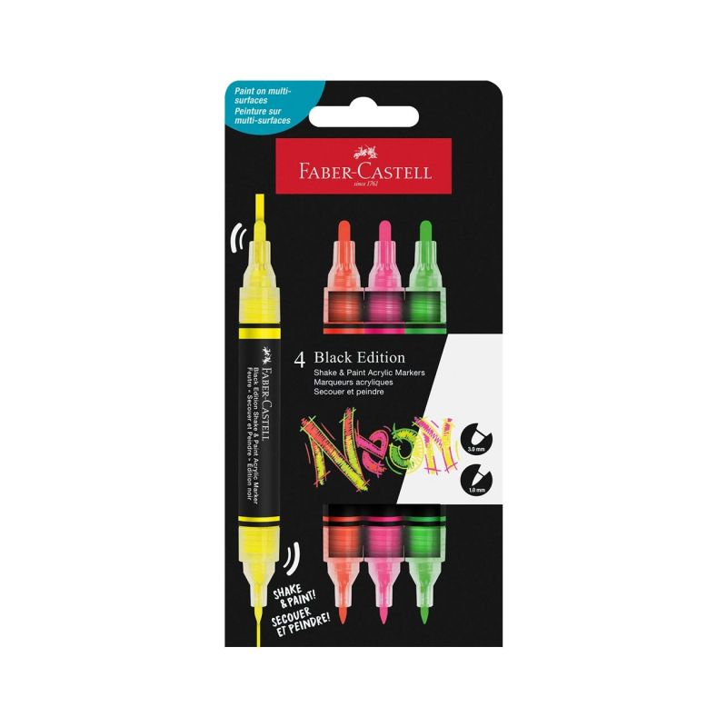 Faber-Castell Акрилен маркер Black Edition, 4 неонови цвята