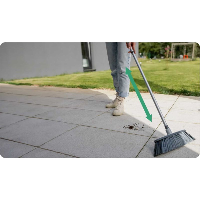 Четката е лесна за почистване – можете да я изтупате или измиете под течаща вода след като приключите с метенето.