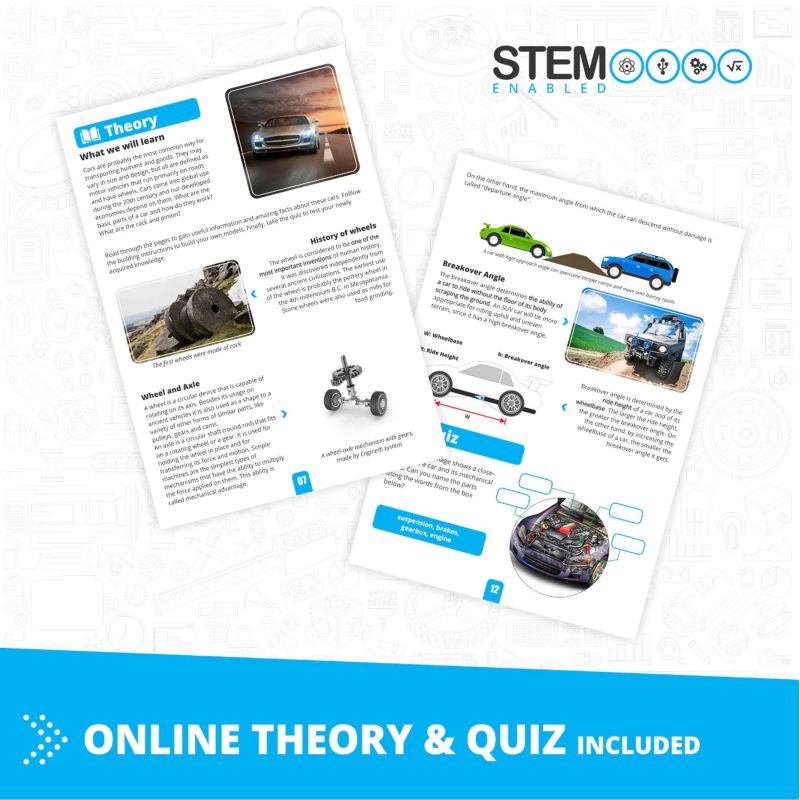 Младите автомобилни инженери ще изучават ключови принципи на STEM (наука, технологии, инженерство и математика), докато запълват детския си гараж Engino с до 10 свръхмощни автомобила, които ще трябва да конструират от нулата! Този мултимоделен комплект за творчески конструктори, с 10 модела, включва печатни и онлайн инструкции за построяване на офроуд превозни средства.