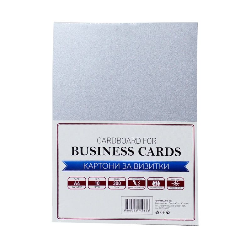 Top Картон, визитен, А4, 300 g/m2, тъмносив, 10 листа