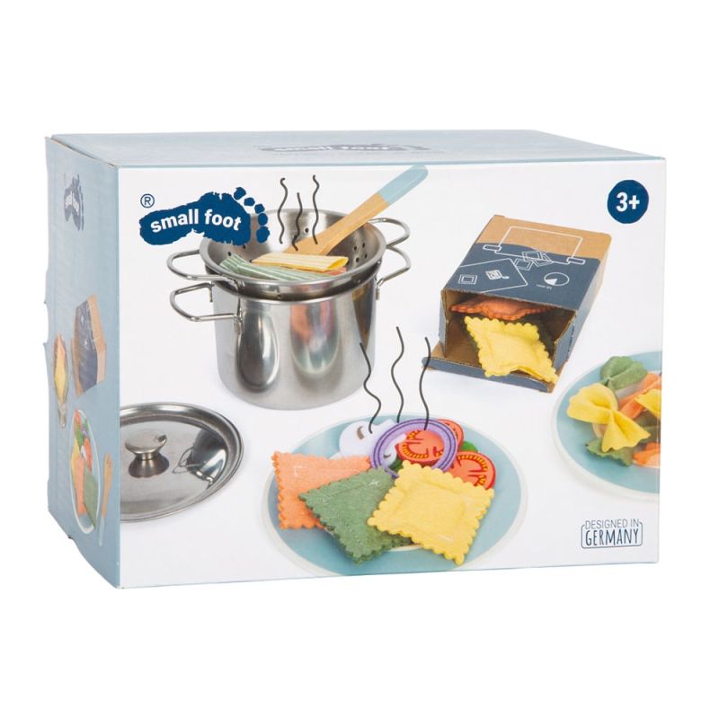 Пастата за игра е идеалното допълнение към всяка кухня за игра или магазин за игра в стаята на вашия малчуган. Тя е изработена от филц и е с приблизително същия размер като истинската, надеждно опакована в стабилни картонени кутии с видими панели. Разновидностите на макароните могат да се смесват както помежду си, така и с останалите съставки от филц. Благодарение на опростените изображения върху опаковката, инструкциите за готвене са лесни за разбиране дори от по-малките деца!