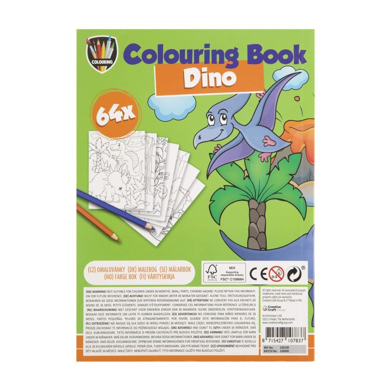 Книжката има 64 страници с контурирани картинки с динозаври.