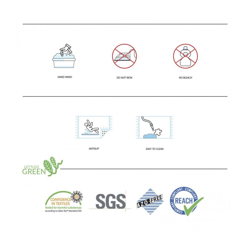 Препоръчва се ръчно пране. За най-добри резултати оставете да изсъхне на открито, окачена или разстлана върху равна повърхност.