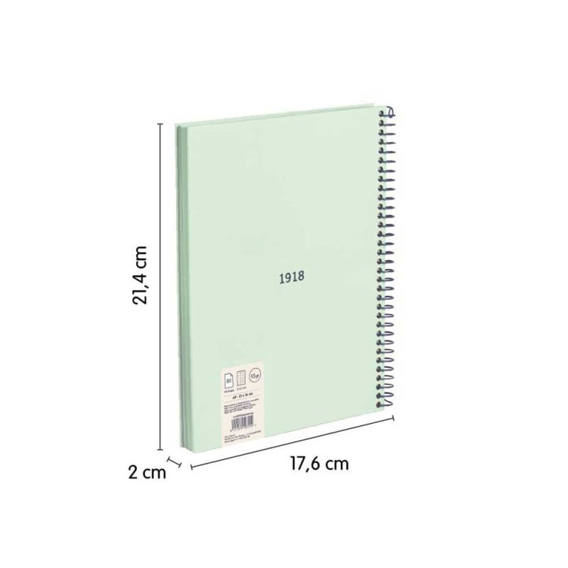 Milan Тетрадка 1918, А5, малки квадратчета, твърда корица, със спирала, 80 листа, зелена