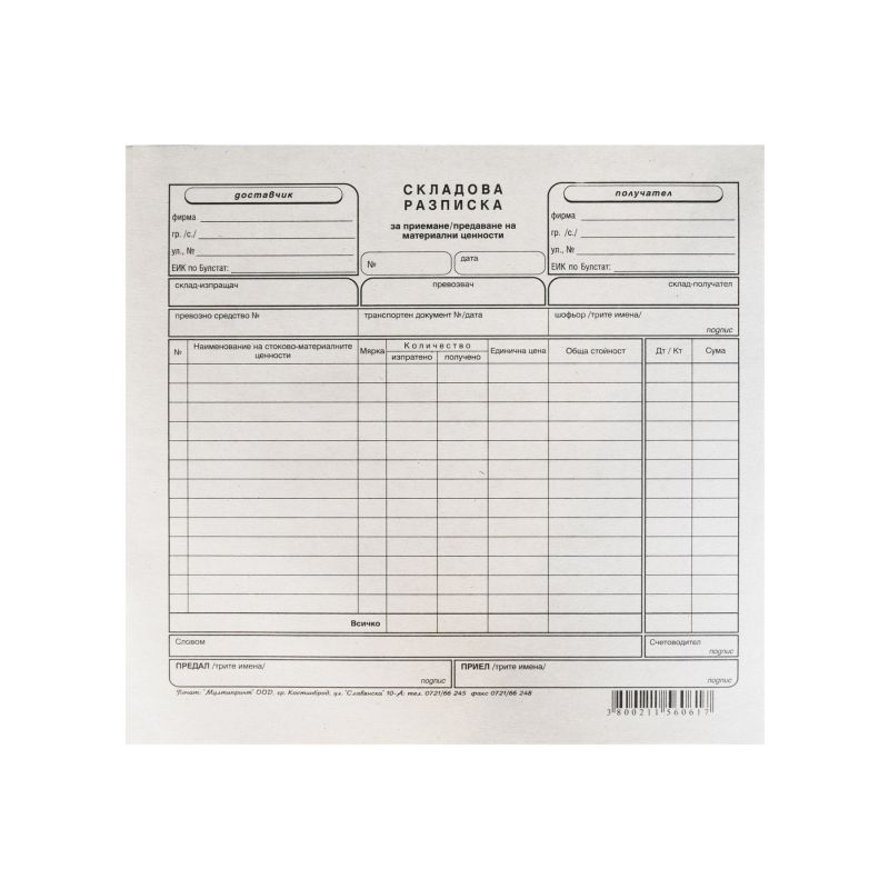 • Складов документ, с който се документира приемането и предаването на стоки.