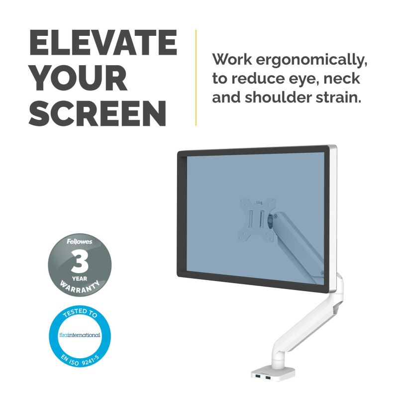 Стойка за монитор Fellowes, с едно рамо, максимално тегло 8 kg, 32'', бяла