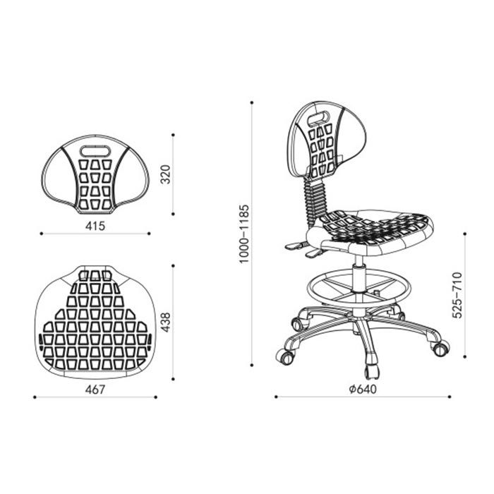 Лабораторен работен стол RFG Nero Ring, висок, полиуретан, до 130 kg, черен, 2 броя в комплект