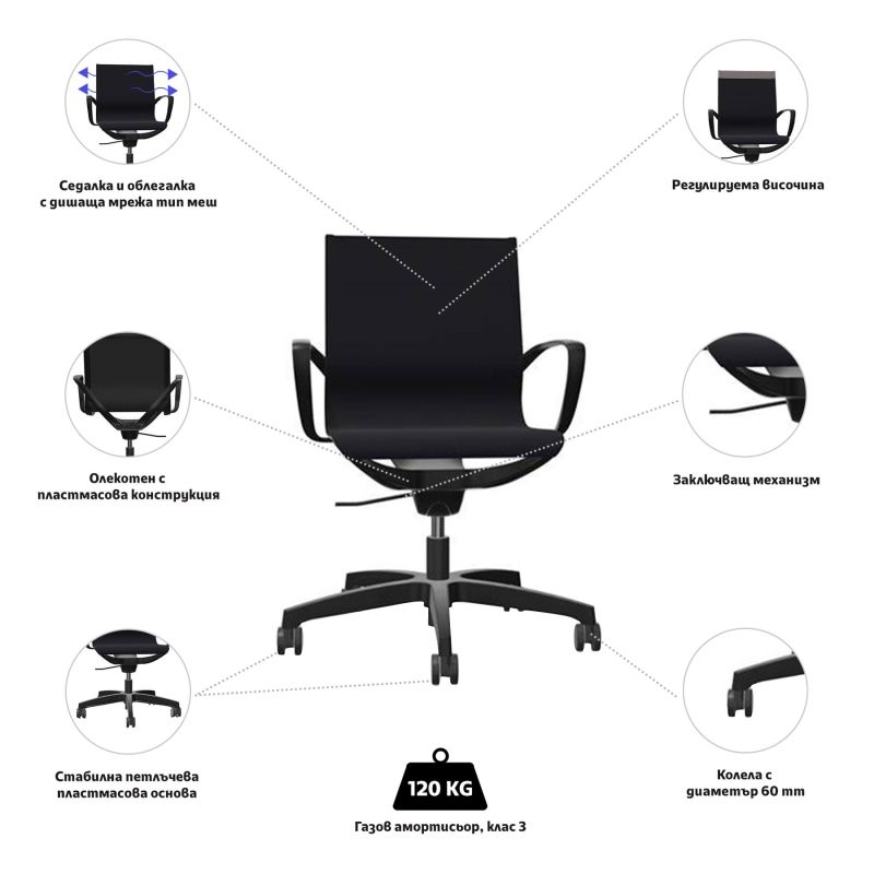 Ергономичен стол Rim Zero ZG 1352, меш, пластмасова основа, черен