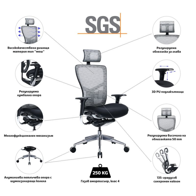 Регулируемата дълбочина на седалката и височина на облегалката, правят стола подходящ за всеки ръст. 3D подлакътници и опора за глава за още повече удобство през работния ден.