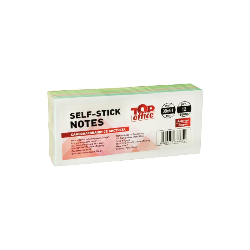 Top Office Самозалепващи се листчета, 38 x 51 mm, асорти, 12 броя