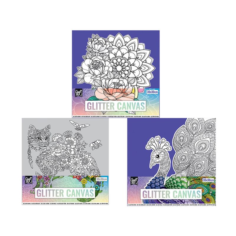 Craft ID Платно за оцветяване, покрито с брокат, асорти, 30 х 30 cm, 9 броя