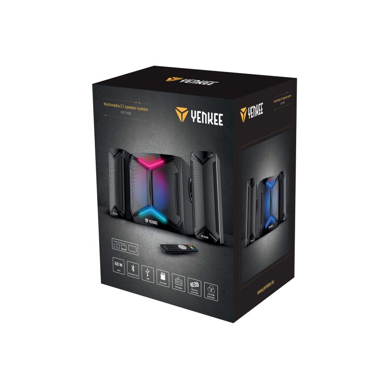 Наслаждавайте се на музика, игри или филми и подобрете аудио изживяването с мултимедийната система от 2.1 високоговорителя с изходна мощност 50 W RMS.