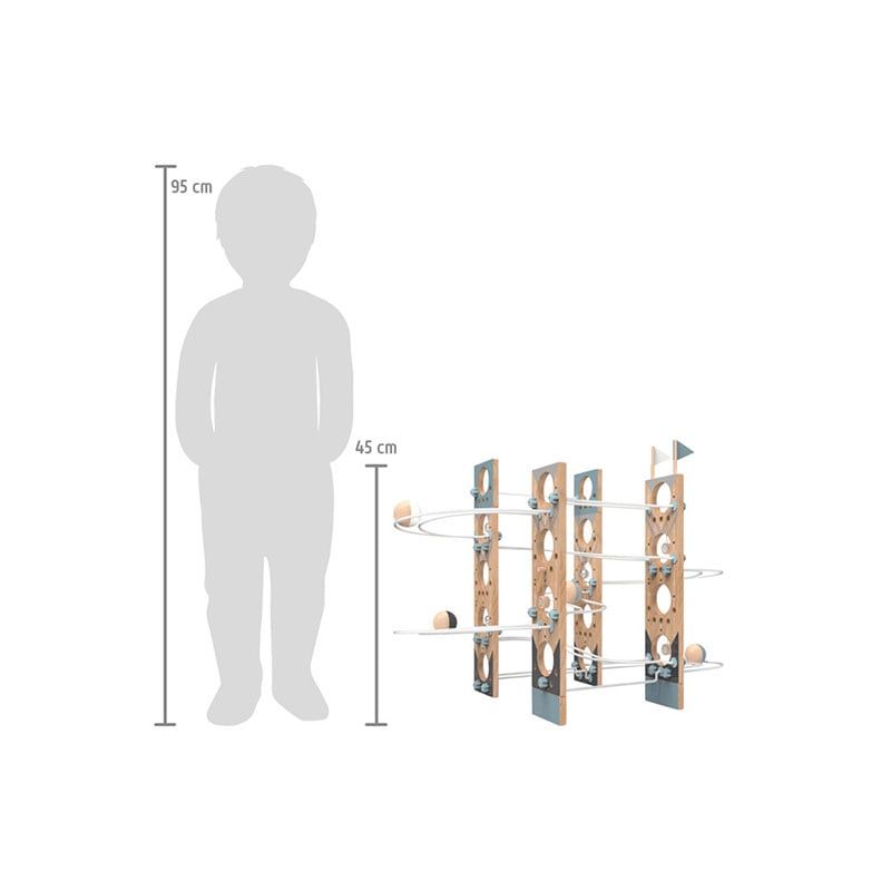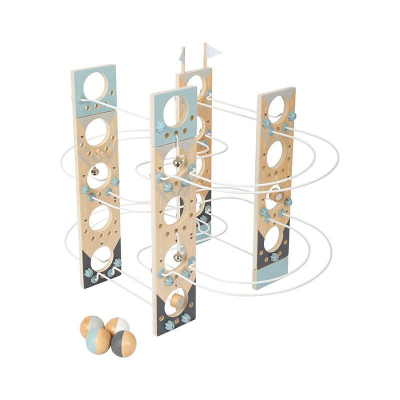 С четирите големи топки, изработени от масивно дърво, запушалки, малки звънчета и флагче на финалната линия, дълготрайното забавление е гарантирано!