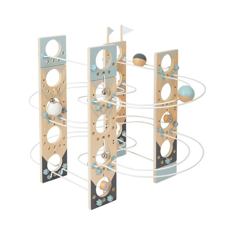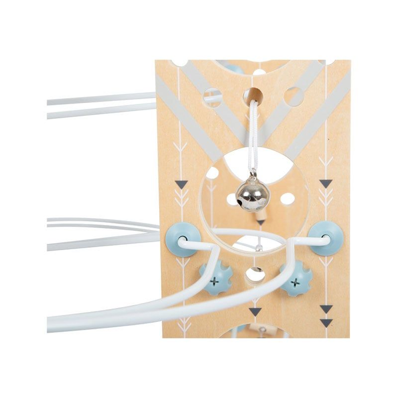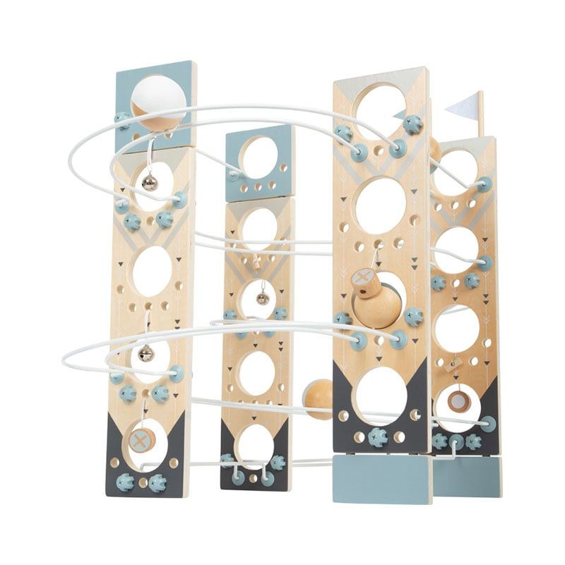 Със своя изтънчен дизайн в модерно опушено синьо и естествено, необработено дърво, тази модулна писта се вписва чудесно във всеки хол или детска стая!