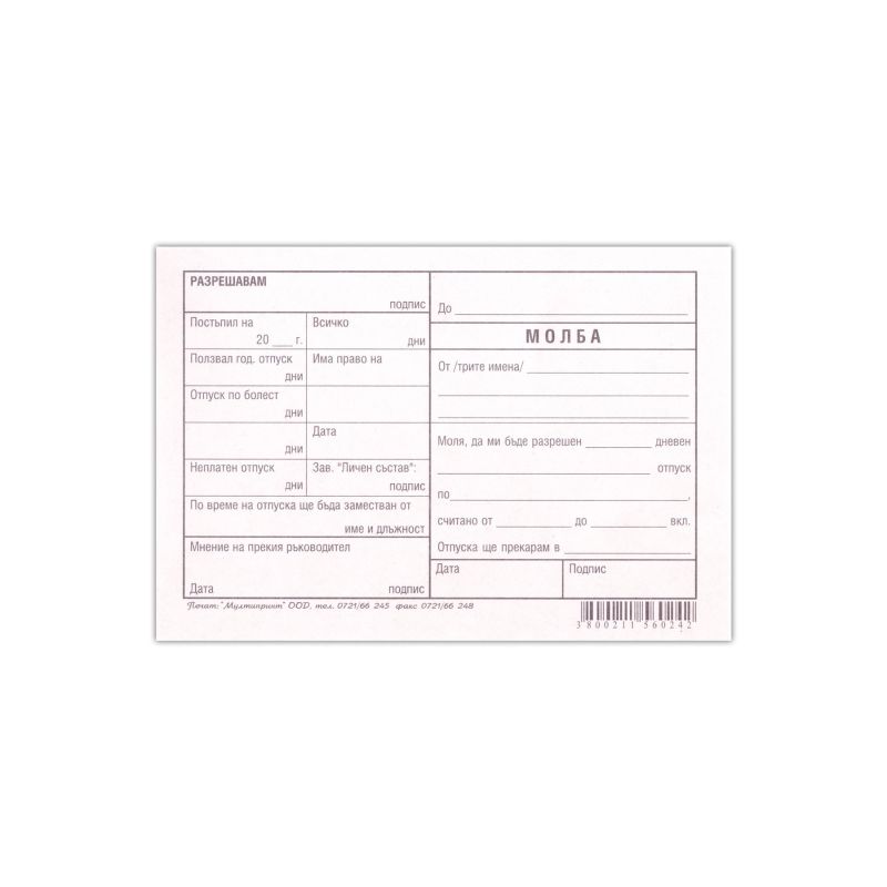 Молба за отпуск, 100 листа