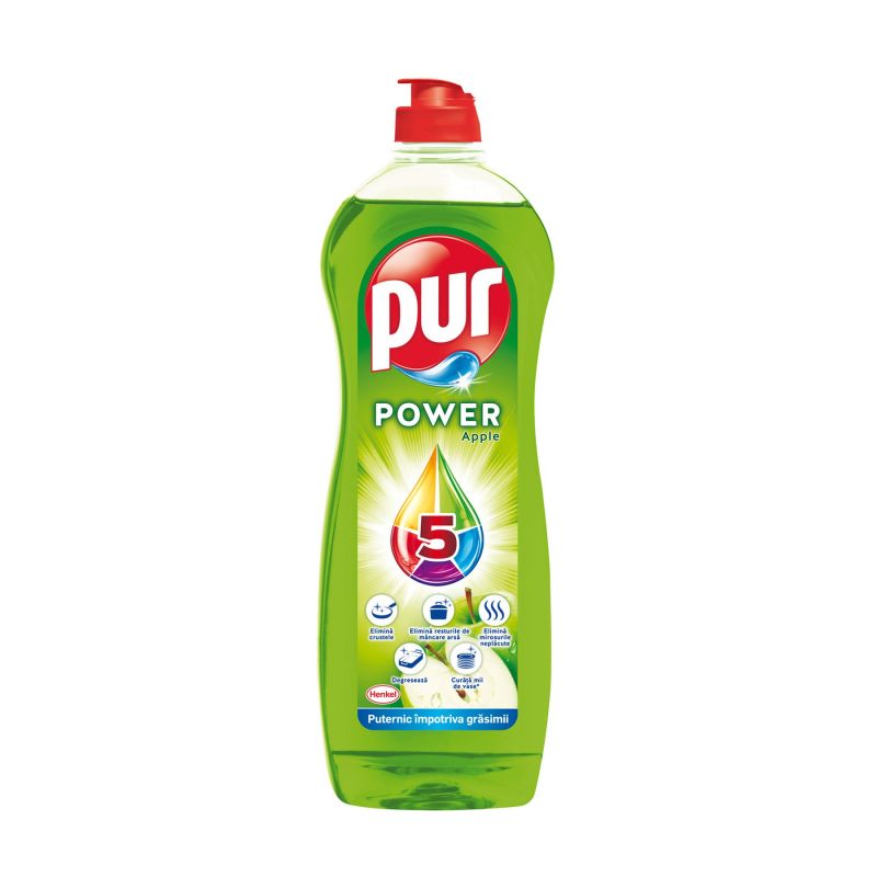 Препарат за миене на съдове Pur Duo Power, ябълка, 750 ml