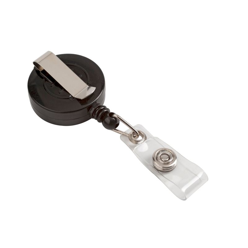 Office 1 Ретрактор, ролетен държач за бадж, с клипс, кръгъл, черен, 5 броя в опаковка