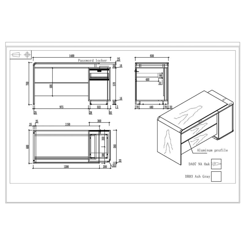 Произведено е с алуминиева рамка на предния панел и на плота, които са свързани с крака, осигурявайки не само естетика, но и здравина. Заключващият се шкаф с парола гарантира максимална защита на вашите файлове, осигурявайки поверителност и сигурност в работния ви простор.