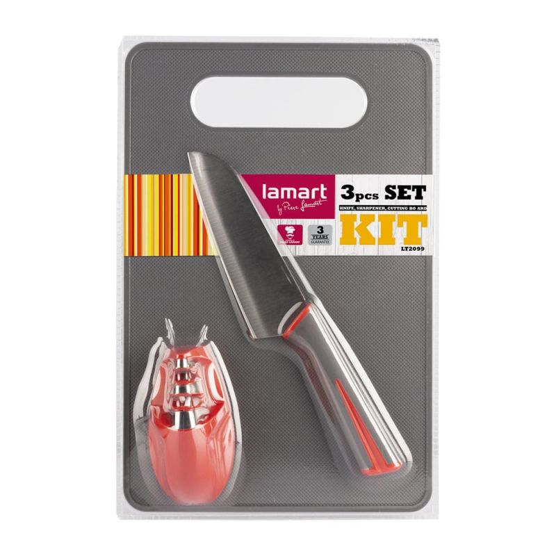 Lamart Комплект нож, точило и дъска за рязане