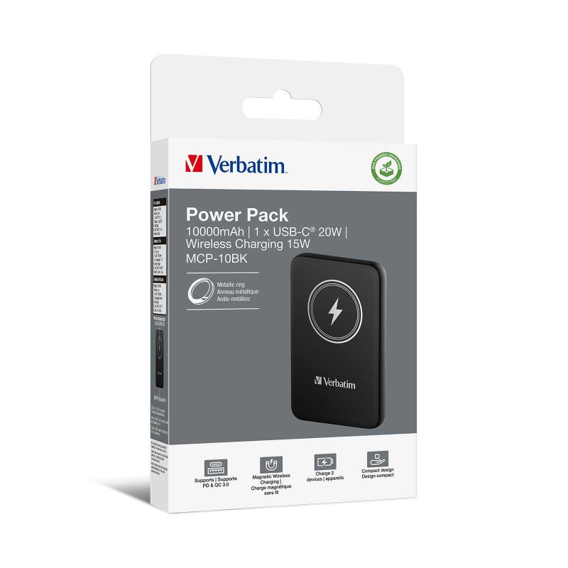 Verbatim Външна батерия Charge 'n' Go, магнитна, 10000 mAh, черна