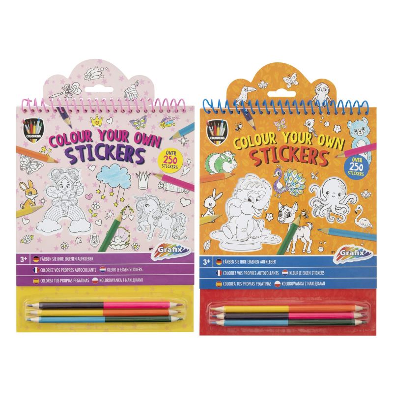С трите двустранни молива, включени във всеки комплект, детето може да оцвети стикерите по свои вкус.