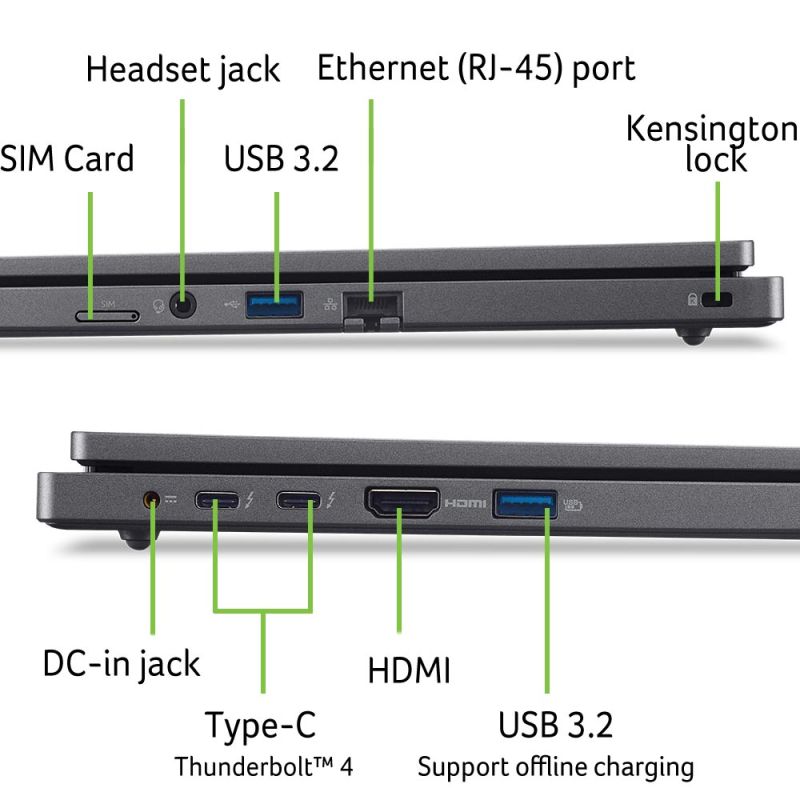 Издръжливият и устойчиво проектиран Acer TravelMate P2 разполага с подобрена производителност, сигурност от бизнес клас и ви гарантира изключително усъвършенствано потребителско изживяване. Независимо дали извършвате ежедневните си задачи на работа или водите важни видеоконферентни разговори, може да бъдете сигурни, че ще работите оптимално удобно и ефективно. Работете с лекота благодарение на 16:10 дисплей, който предлага по-голяма вертикална площ на екрана. Този малък лаптоп за бизнеса също така разполага и със 180° панта, голям тъчпад, цифрова клавиатура и клавиши с ход 1.55 mm за по-добра използваемост. Защитете данните си и работете без притеснения. Този компютър със защитено ядро разполага с дискретен TPM 2.0, четец на пръстови отпечатъци и инфрачервена камера за защитено влизане в системата. Освен това добавеният затвор за защита на личното пространство намалява риска от неоторизиран достъп до вашата уеб камера. Останете свързани, независимо къде се намирате с Wi-Fi 6E1 и 4G LTE свързаност. Свържете всичките си периферни устройства към този лаптоп, благодарение на голямото разнообразие от портове, включително Type C Thunderbolt 4 порт, поддържащ трансфер на данни със скорост 40 Gbps.