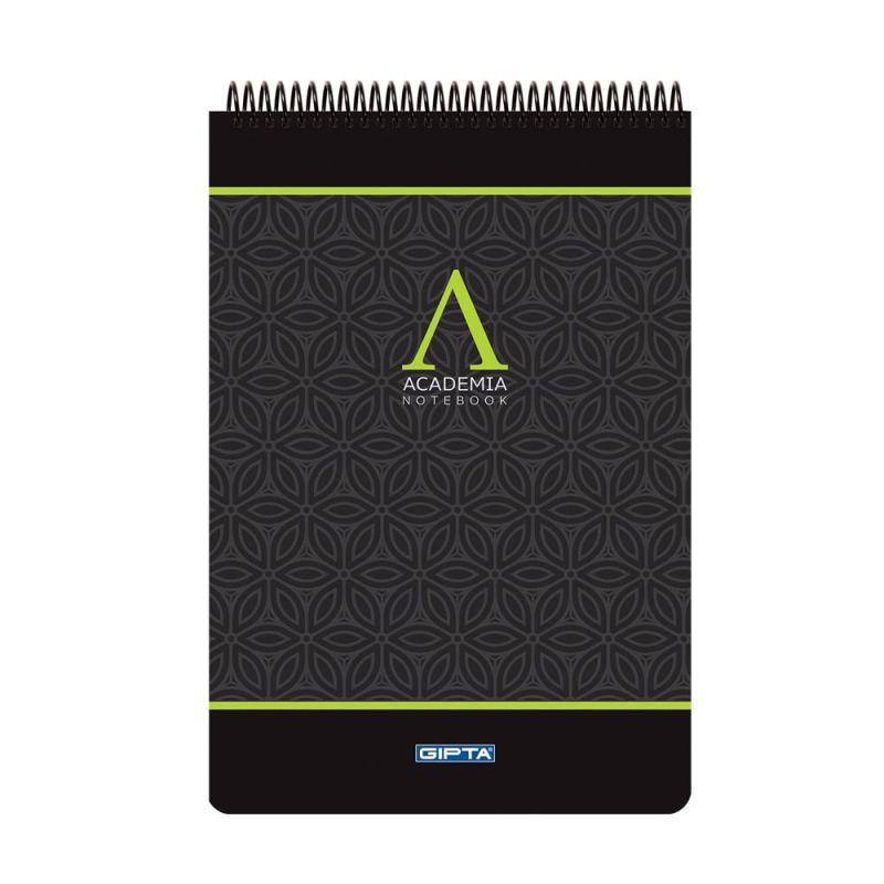 Gipta Academia Пад, 19 x 26 cm, бял, широки редове, микроперфорация, твърда корица, със спирала, 100 листа