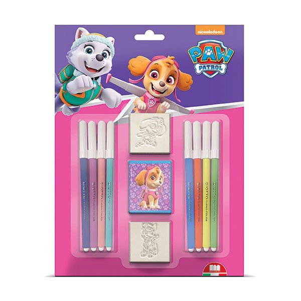 Multiprint Комплект Пес Патрул, за момиче, с 2 печата и 8 флумастера