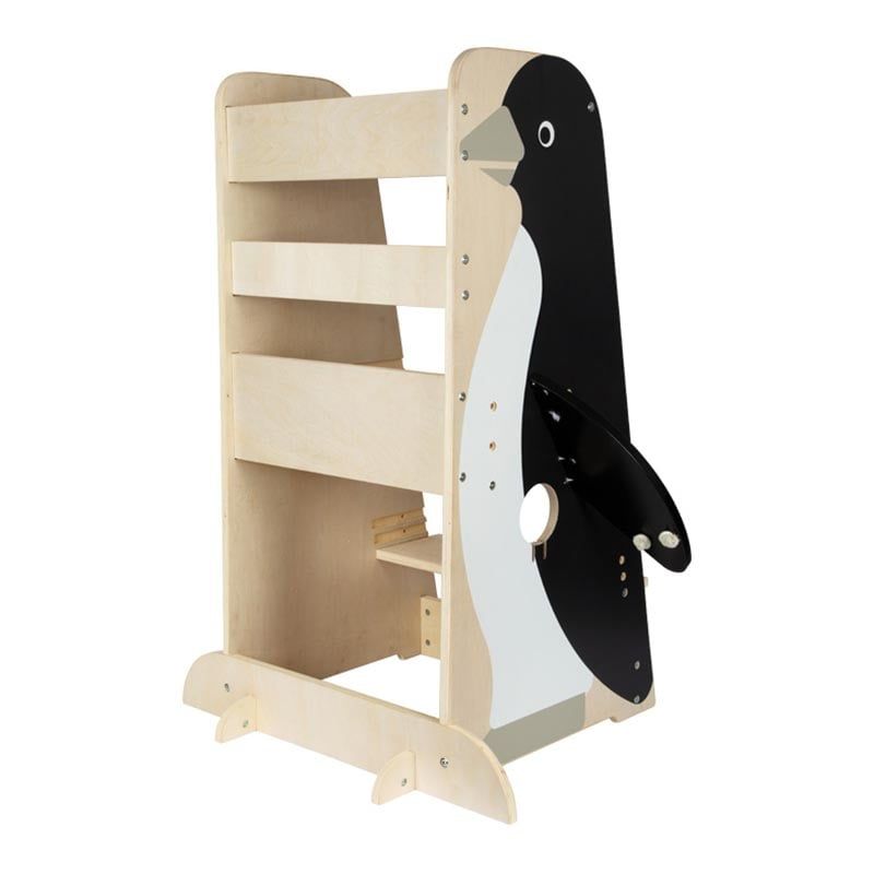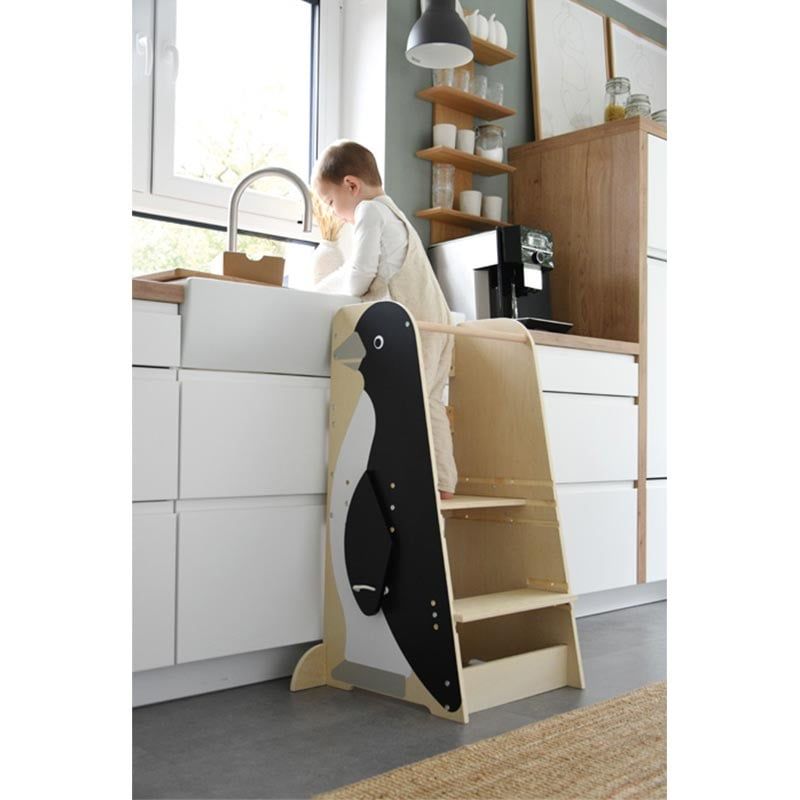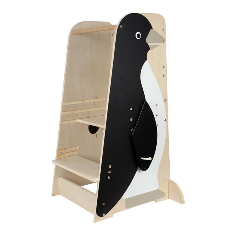 Помощната кула Small Foot Пингвин е идеалното допълнение към дома на всяко семейство с малки деца. Тя е създадена, за да подпомогне самостоятелността на детето и да му позволи безопасно да участва в ежедневните дейности на възрастните, като готвене, миене на ръце или творчество. Със своя стабилен дървен дизайн и симпатична форма на пингвин, тази помощна кула съчетава функционалност и забавление.