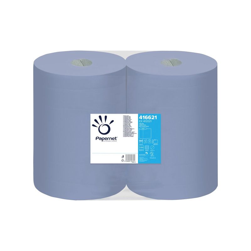 Индустриална ролка Papernet, двупластова, 360 m, 1000 къса, синя, 2 броя